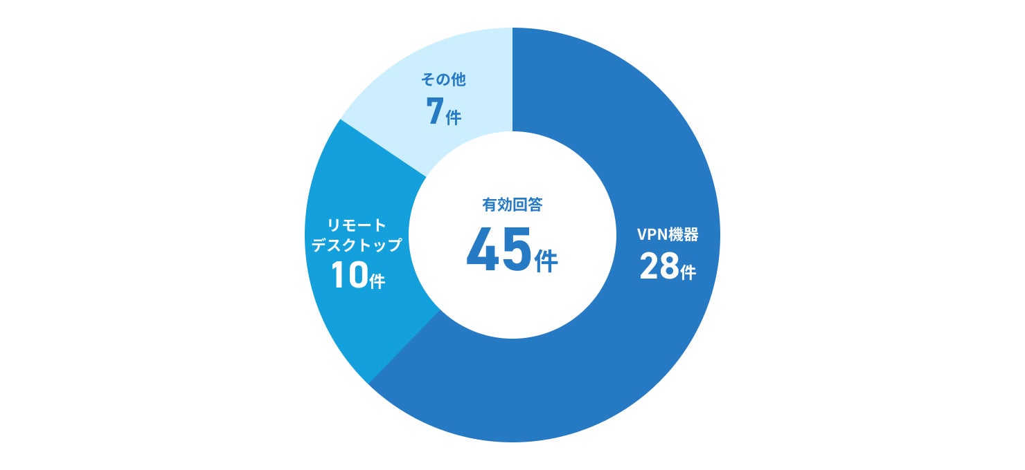 ランサムウェアの感染経路は多岐にわたります。警察庁が発表した「令和7年上半期におけるサイバー空間をめぐる脅威の情勢等について」によると、「ランサムウェア被害にあった企業・団体等へのアンケート調査の回答結果(感染経路)」【下図】では、VPN機器が最も多い感染経路として挙げられました。次いで、リモートデスクトップが多く報告されています。
