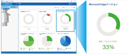 Windows、Webブラウザ、ウイルス対策ソフトウェアなど、全社的に利用するような主要なソフトウェアのアップデート状況をグラフでわかりやすく確認できます。