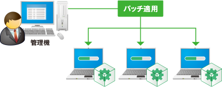 アップデート漏れが見つかった際は、管理機からパッチを遠隔で配布・適用することが可能。複数のPCに対して一括で実行できます。