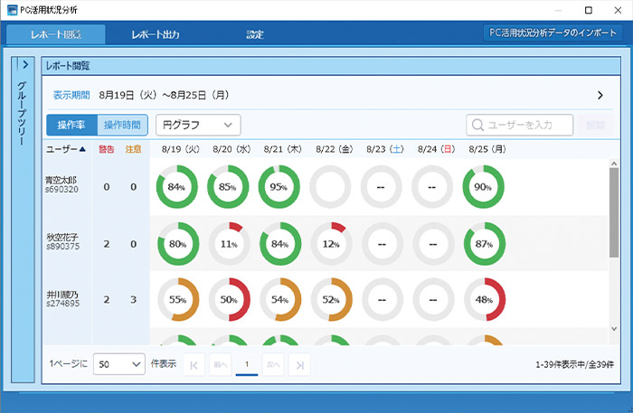 従業員の業務状況や組織のセキュリティリスクなどが見える化され、ひと目で把握できます。