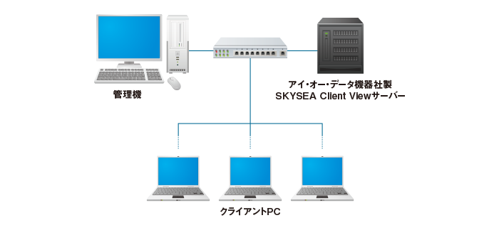アイ・オー・データ機器社製 アプライアンスプラットフォーム装置※1を使用することで、サーバー機を導入せずに、クライアントPCの制限や操作ログ収集、USBデバイス、ソフトウェア資産の管理が可能となり、小規模な環境でも情報漏洩対策やIT資産の有効活用が容易に行えます。